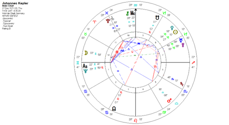 Coming strongly under Saturn’s influence was Johannes Kepler born at the winter solstice in 1571, who had Sun, Mercury, Venus and Uranus in Capricorn together with Saturn in Scorpio ruling his Aquarius midheaven. He is remembered for having proposed a geometrical model of the solar system with its seven traditional planets which orbit around the central Sun. He gave us his three laws of planetary motion: that planets go round the Sun in ellipses rather than circles, that planets closer to the Sun travel faster, and that a planet’s orbital period is determined by its distance from the Sun. At the moment, transiting Saturn sits upon his MC. He died at the time of his second Saturn return in 1630, presumably having completed what he had come to earth to do in that particular incarnation, hinted at by the moon’s north node in Leo, the Sun at the centre and heart of all.